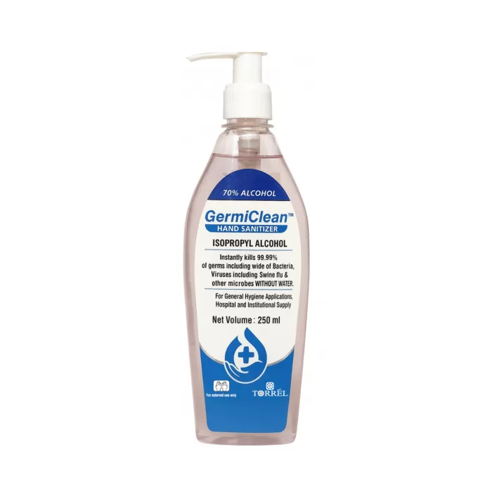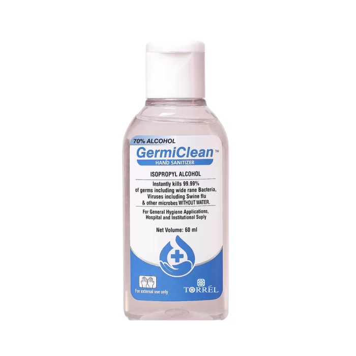 Germiclean Hand Sanitizer is a crystal-clear, non-sticky disinfectant gel designed for instant hand hygiene. It effectively kills 99.99% of germs, including a broad spectrum of bacteria, viruses such as the Swine Flu virus, and other microbes, without the need for water or towels. This sanitizer not only helps reduce the risk of infection but also leaves behind a pleasant fragrance, making it a convenient and refreshing solution for maintaining hand hygiene on-the-go.