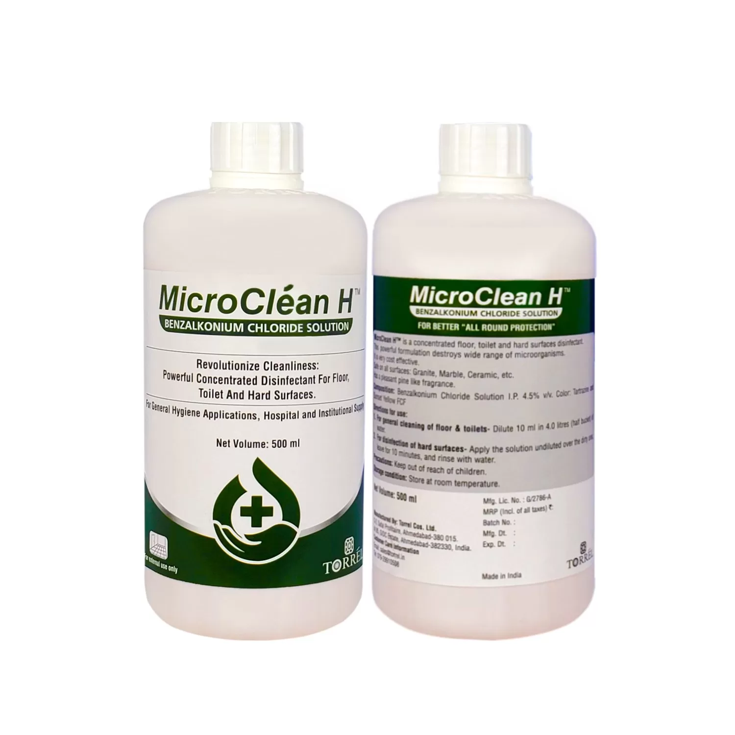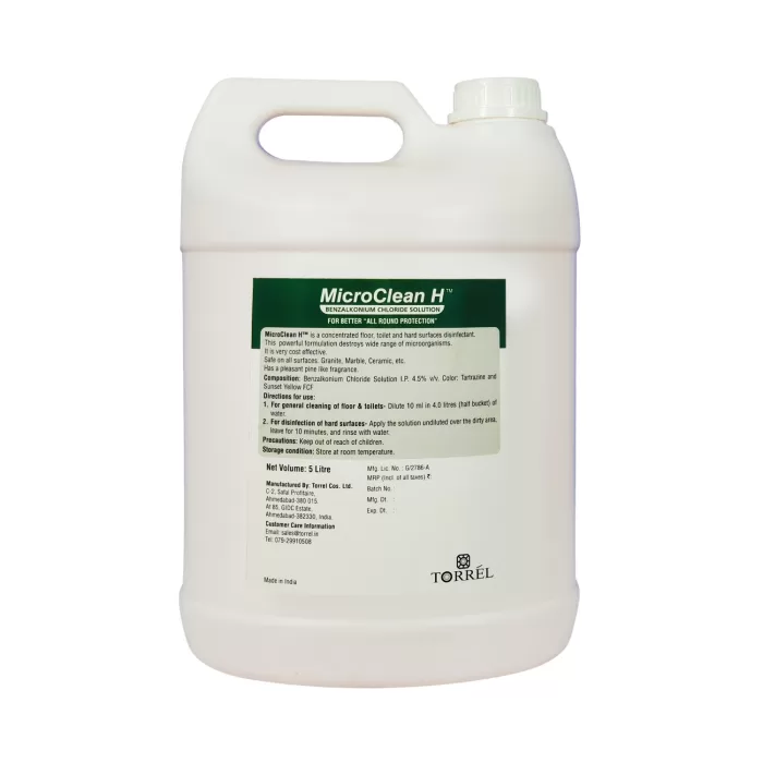 MicroClean-H is an aldehyde-free disinfectant designed for the general cleaning of floors and toilets and the disinfection of hard surfaces. It contains Quaternary Ammonium Compounds, offering effective and rapid biocidal action. MicroClean-H is a non-corrosive and economical solution with excellent foaming properties, making it ideal for hospital environments. It has a pleasant pine fragrance and is safe for all washable surfaces, providing both cleanliness and a fresh environment.