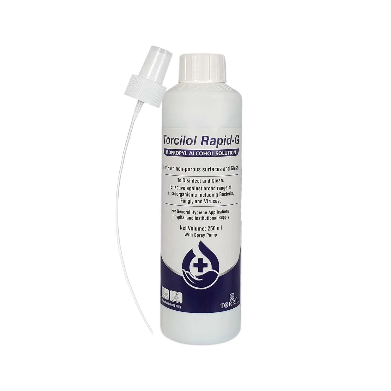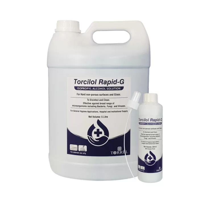 Torcilol Rapid-G is a ready-to-use disinfectant, designed specifically for the disinfection of clinical contact surfaces in high-tech medical environments. Utilizing a “Spray-Wipe-Spray” technique, it offers fast and effective disinfection with rapid antimicrobial action. Ideal for use on sensitive medical equipment and surfaces, Torcilol Rapid-G ensures high-level hygiene with minimal effort, providing an easy-to-use solution for medical facilities.