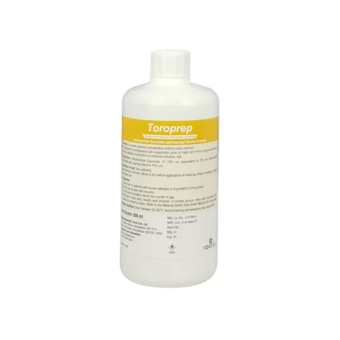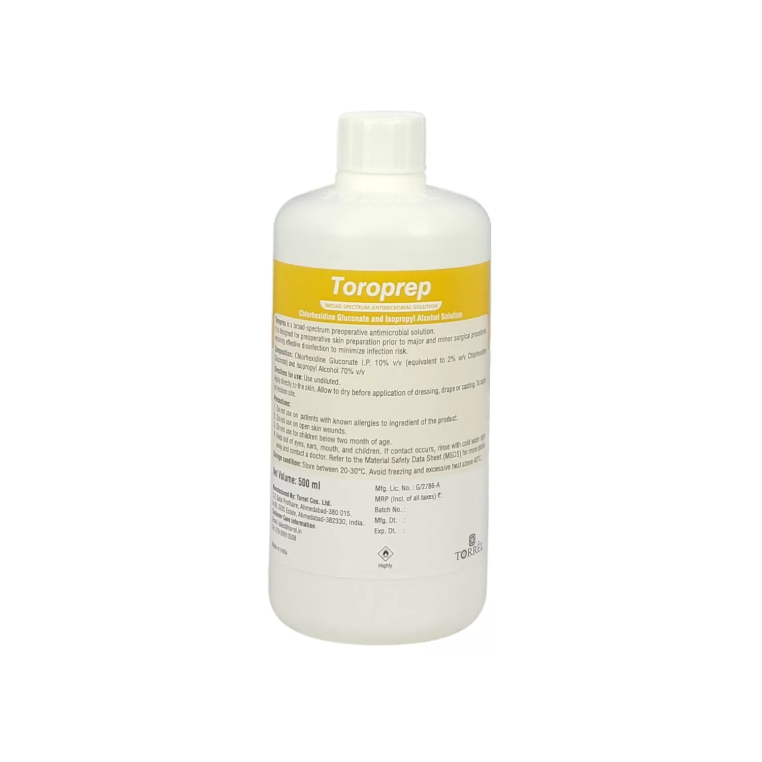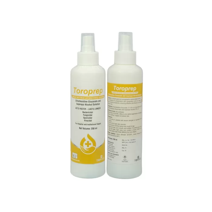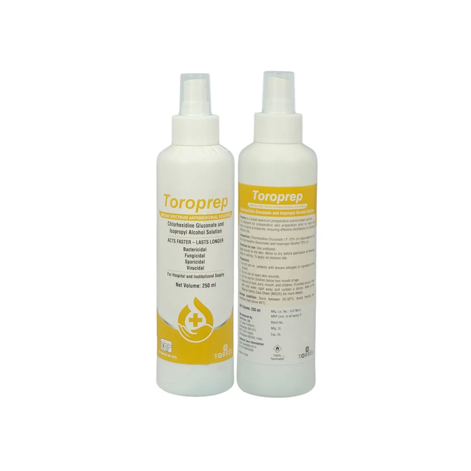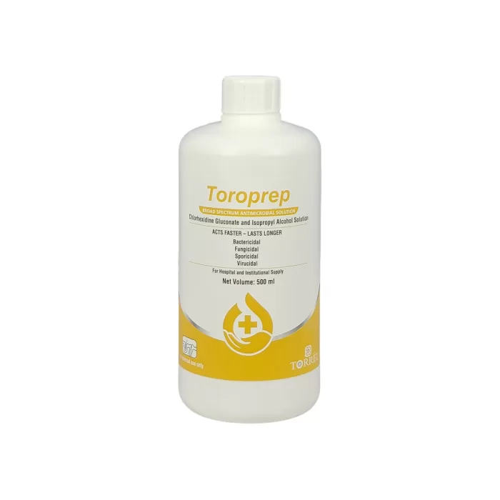 Surgical site infections (SSI) complicate an estimated 5% of all operations performed annually in US hospitals, resulting in longer hospitalizations and higher costs. Toroprep™ is a highly effective preoperative skin preparation solution that helps reduce the risk of SSI. Combining two powerful antimicrobial agents—Chlorhexidine Gluconate and Isopropyl Alcohol—Toroprep™ offers fast-acting, broad-spectrum antimicrobial activity with a persistent effect lasting up to 6 hours post-prep. This one-step preparation is preferred for its ease of use, effective action, and cost-effectiveness compared to traditional scrub-and-paint methods.