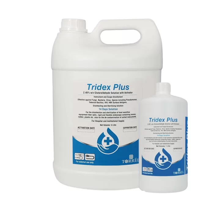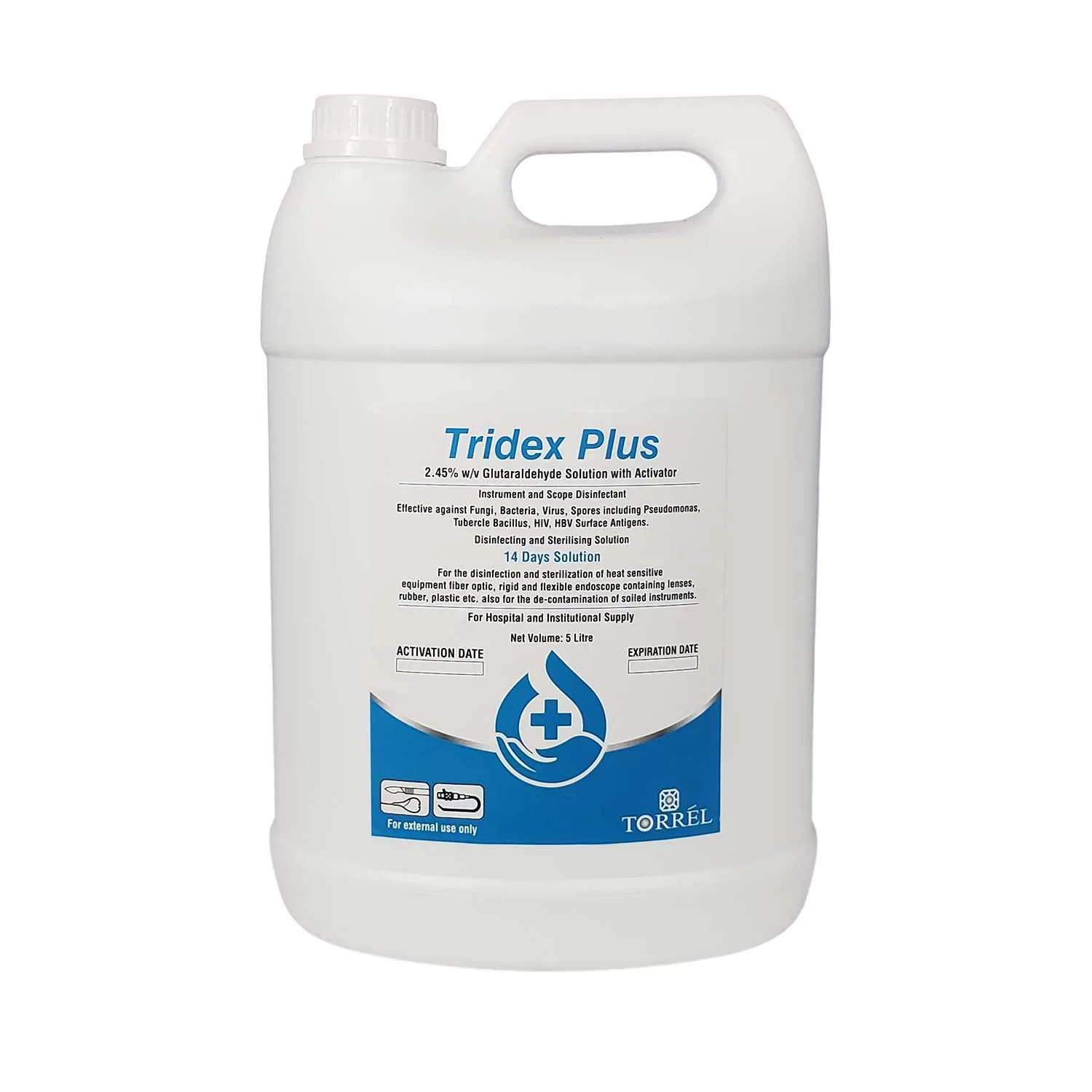TRIDEX PLUS is a rapid-acting, high-level disinfectant and sterilant formulated to meet the challenges posed by resistant microbes. It is effective against a wide range of pathogens, including bacteria, fungi, viruses, and mycobacteria. TRIDEX PLUS is designed for use in healthcare settings and is suitable for sterilizing and disinfecting medical instruments, providing fast and reliable biocidal action.