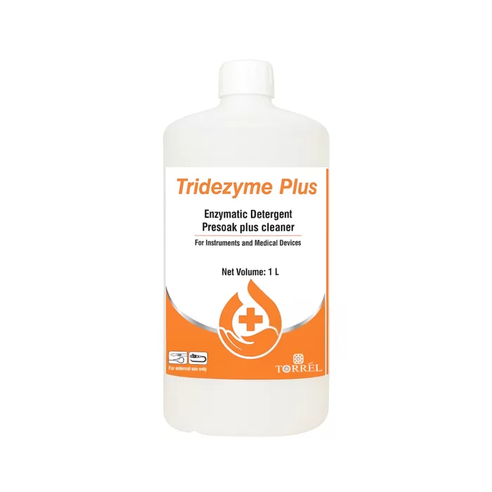Tridezyme Plus is a presoak cleaner formulated to reduce bio-burden on instruments prior to disinfection and sterilization. It is a neutral pH enzymatic detergent that safely removes organic matter, ensuring that instruments are properly prepared for the next steps in the cleaning and sterilization process. Unlike acidic detergents, it is non-corrosive to metal surfaces, making it ideal for delicate instruments.